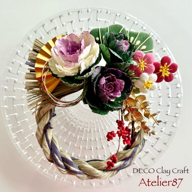 『お正月飾り2026年Ver.』のご案内です毎年ご好評いただいておりますお正月飾り2026年版は、クレイで作った葉牡丹と可愛い和小物でアレンジしています。 なお、過去にお作りしたデ...