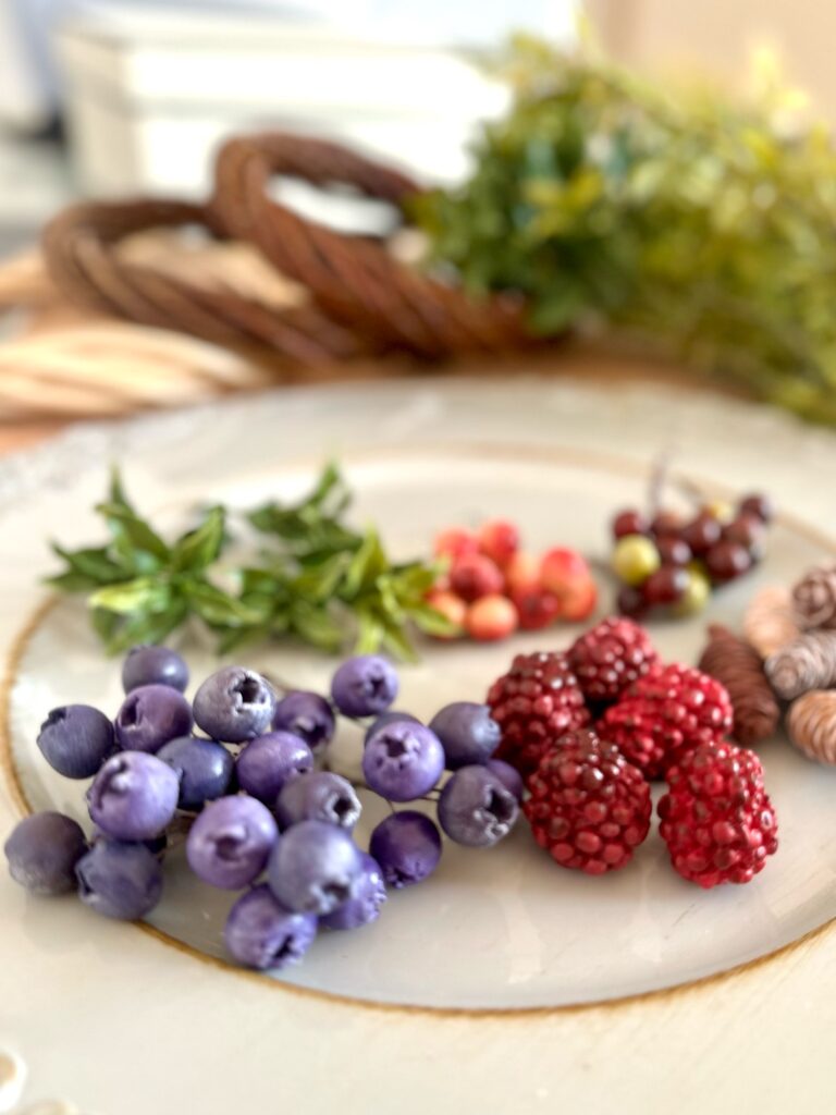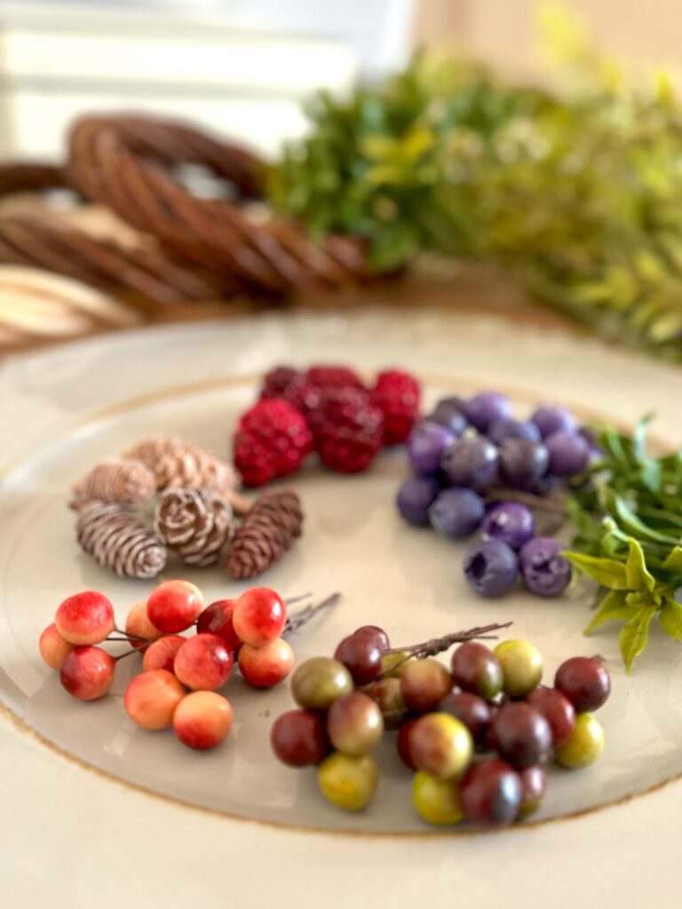 クレイで作ったたくさんのベリー、パインコーン、たっぷりのおリボンで、これからの季節にぴったりのミニリースを作りませんか?