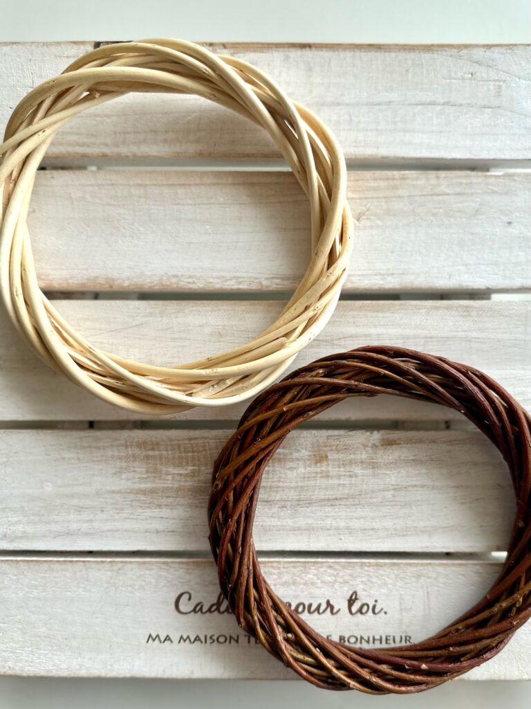 リース土台はブラウンとベージュホワイトの2種類、おリボンも多数ご用意しております。クレイで作るベリーはお好みのカラーでお作りいただけますので、自分好みのミニリースに仕上げてくださいね
